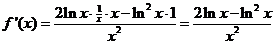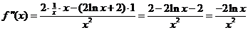 (x) = ln2x + 2lnx - 2 f '(x) = 2lnx 1/x + 2 1/x = 2lnx/x + 2/x = (2lnx + 2)/x |