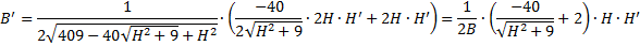 H = √216 en H' = 0,2: B' = 1/8 (-2/3) √216 0,2 = -0,98 m/s |