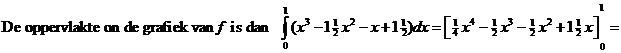= 0 x2 = 1 ∨ x = 11/2 x = 1 ∨ x = -1 ∨ x = 11/2 Tussen O en B in snijdt de grafiek van f de x-as in (1,0) |