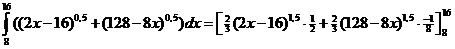 + (6 - x)2 F(x) = 2/3 • (5 - 2x)1,5 • 1/-2 + 1/3(6 - x)3 • -1 F(x) = -1/3(5 - 2x)1,5 - 1/3(6 - x)3 |