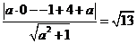 + 1)) (5 + a)2 = 13(a2 + 1) 25 + 10a + a2 = 13a2 + 13 12a2 - 10a - 12 = 0 a = (10 ±√(676))/24 a = 11/2 ∨ a = -2/3 Door (-1, 4): a = 11/2 geeft y = 11/2x + 51/2 a = -2/3 geeft y = -2/3x + 31/3 |