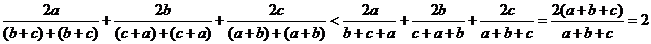 z = 3,3 Maar z < b + c dus z is minder dan de helft van 3,3 Dus z < 1,65 a + b + z is de omtrek van PAB en die is 5,7 Als z < 1,65 dan moet wel gelden dat a + b > 5,7 - 1,65 = 4,05 |