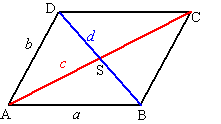 en de diagonalen c en d AD ≤ AS + SD dus b ≤ 1/2c + 1/2d AB ≤ AS + SB dus a ≤ 1/2c + 1/2d Tel die twee op: a + b ≤ c + d |