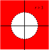 | 3. | a. | Alles buiten de cirkel met straal 3 en de oorsprong als middelpunt. |