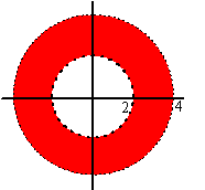 | c. | Het gebied tussen de cirkels met straal 2 en 4 en middelpunt de oorsprong. |