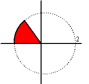 | d. | Het gebied binnen de cirkel met straal 2 en middelpunt de oorsprong, en dan alleen tussen 135º en 180º |