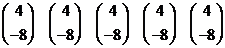 niet veel mee op; alle lijnen hebben dezelfde richting. Laten we kijken op welke lijnen (2,1), behalve op de eerste, nog meer ligt: nr2: NEE nr3: JA; het is de steunvector nr4: NEE nr5: NEE Eerste conclusie: nr1 en nr 3 zijn dezelfde lijn. Kijk nu op welke lijnen (5, -6), behalve op de tweede, nog meer ligt: nr4: JA neem λ = -5/4 nr5: NEE Twee conclusie: nr2 en nr4 zijn dezelfde lijn. Dus 1-3 en 2-4 zijn dezelfde lijnen |