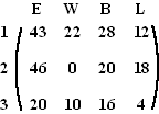 | d. | De matrix die dat geeft is 0,8J + 0,6M | ||||