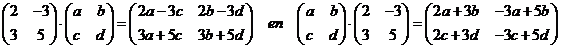 | Dus moet gelden: 2a - 3c = 2a + 3b 3a + 5c = 2c + 3d 2b - 3d = -3a + 5b 3b + 5d = -3c + 5d Uit de eerste volgt