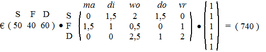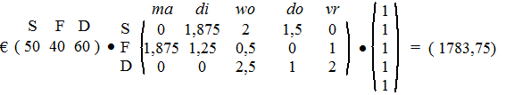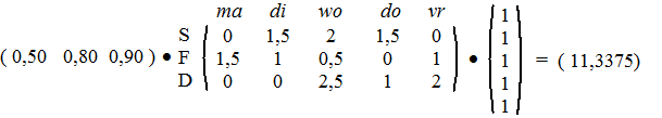 | b. | Dan kun je net zo goed het aantal bezoekuren op ma en di met 25% verhogen. Dat geeft: | ||||